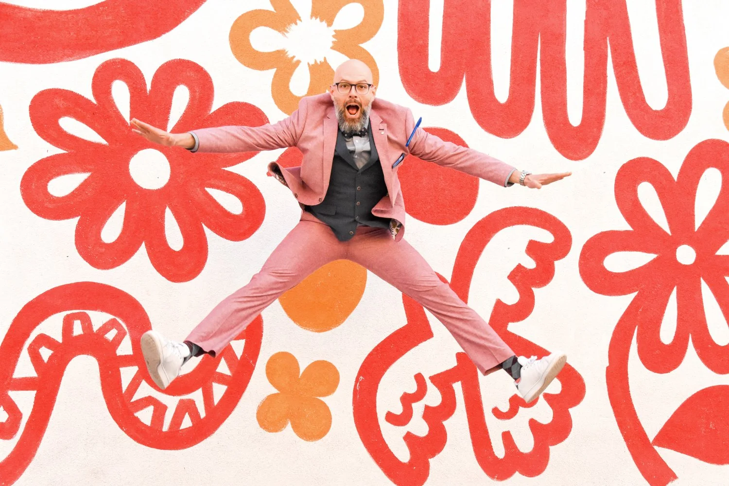 Really fun day capturing him with his pink ensemble from Paisley and Gray. Great mix of Eddie’s classy and raucous energy. In particular, I have to shout out his jumping split shot in front of a very complimentary alley mural: honestly, one of my favorite images capture ever. Eddie says he’d love to blow it up and have it hang in his living room someday. That’d be an honor and blast.